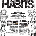 한국-팔레스타인 합동 전시회 에 한국 작가로 참여해서, 멋진 작품들 뿐 아니라 초인적인 일 능력과 인내심과 상냥함(!)을 보여줬던 스트릿 아티스트 크루 - 정말 잠도 안자고 작품+일을 해냈다 - 이 남자는 SUPACRQS (수파서커스) 의 리더 Gufmott (거프모트) 씨다. 이들이 정기적으로 여는 반상회 같은 게 있는 데 이름이 다 4번째 Habits 가 청계천과 홍대 ctrt 에서 있다길래 잠깐 들렀다 네번째 HABITS 포스터 아, 근데 정크하우스...와 수파서커스는 무슨관계일까요 현대 예술의 족보는 항상 어렵다 여기도 dEUS 와 Moondog Jr. 의 족보 같다 어쨌든. 도착했더니 마침 시작하려고 할 때. 모여서 얘기를 하는 것 같더니 앉아서 단체 사진을 찍고 라이브 페인팅 시작 구경하는 아..
